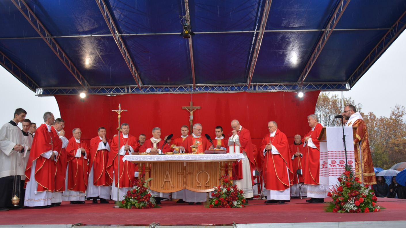 Uslijedilo je svečano misno slavlje koje je predvodio gospićki biskup Zdenko Križić. U koncelebraciji bili su nadbiskup Hranić, apostolski nuncij u RH Giorgio Lingua, nadbiskup vrhbosanski i apostolski upravitelj Vojnog ordinarijata u BiH Tomo Vukšić, biskupi požeški Antun Škvorčević, bjelovarsko-križevački Vjekoslav Huzjak, sisački Vlado Košić, šibenski Tomislav Rogić, varaždinski Bože Radoš, križevački Milan Stipić, pomoćni biskupi zagrebački Mijo Gorski, đakovačko-osječki Ivan Ćurić, tajnik Apostolske nuncijature Alfred Rayan D’Souza, generalni vikar Srijemske biskupije Josip Ivešić, generalni tajnik HBK Krunoslav Novak, provincijalni ministar Hrvatske franjevačke provincije sv. Ćirila i Metoda fra Milan Krišto, župnik domaće vukovarske župe fra Ivica Jagodić te veći broj svećenika.