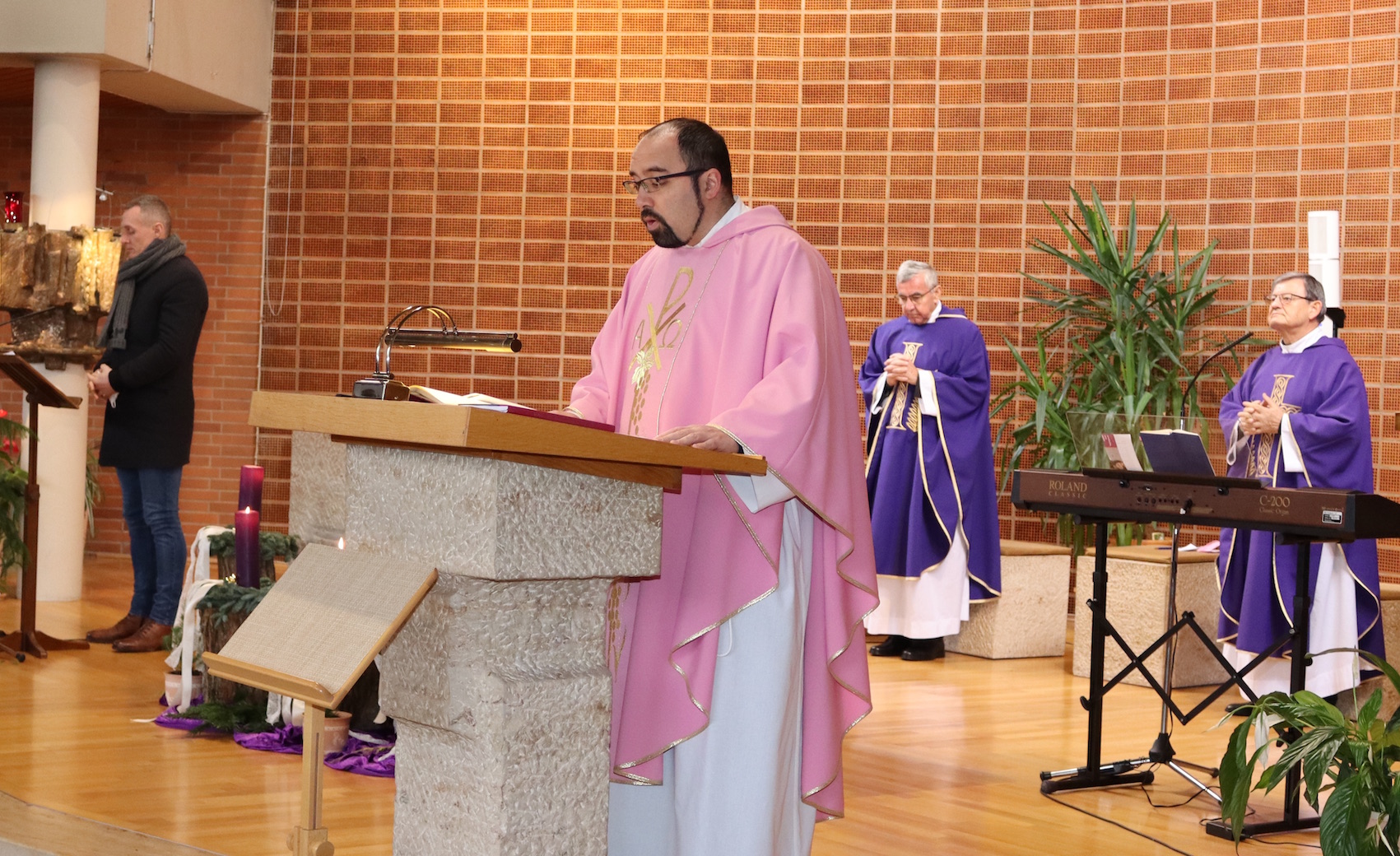 Propovijedao je fra Ivan Penava koji je istaknuo kako Isus „koristi“ Ivana Krstitelja da prenese poruku i dođe u naš život. „Glas je onaj koji prenosi, a ključna je riječ koja se prenosi. Mi smo svećenici glas koji vama govori i nije važan glas nego poruka. Sv. Ivan završava svoju utrku, on se mora smanjiti da bi Isus mogao rasti. Glas nestaje, utihne, ali riječ ostaje. Vi se danas opraštate od svog dosadašnjeg župnika vlč. Ivana. I on je bio glas, koji je govorio, propovijedao i prenosio Isusovu poruku. On se s vama radovao u radosnim trenucima i tugovao u tužnim trenucima. Obilazio vas je, trudio se pritom dati sve od sebe. Jesmo li pritom prepoznali Ivana Krstitelja ili smo čuli glas Isusov? Vlč. Ivan polako odlazi, a Isusova riječ ostaje u vama. Ne samo mi svećenici, svatko je od vas glas koji treba prenositi Isusovu poruku. I mi smo Hrvati glas u ovom kraju. Nijemci i drugi s kojima ovdje živimo čuju glas. Artikuliramo li ga dovoljno kada čuju našu riječ? Vide li radost, mir, u našim običajima, u našem ponašanju, u našoj vjeri prepoznaju li Isusovu riječ? Pozvani smo, poglavito u ovo vrijeme došašća u poniznosti primiti Isusovu riječ bilo kroz ispovijed, sv. misu, čitanje Sv. pisma, kroz toplinu svoga doma. I tako postajemo glas koji će tu riječ prenijeti drugima. I vlč. Ivan se u poniznosti oprašta s vama, odlazi u jednostavnosti svoga svećeničkog djelovanja i ostavlja vam tu riječ. Volio bih da u ove dane zapištete riječi koje su vam od njega ostale i pričajte o tome svojoj djeci i unucima. Dopustimo da u poniznosti dočekamo i Božić, jer se Isus ponizio i sišao među nas.“