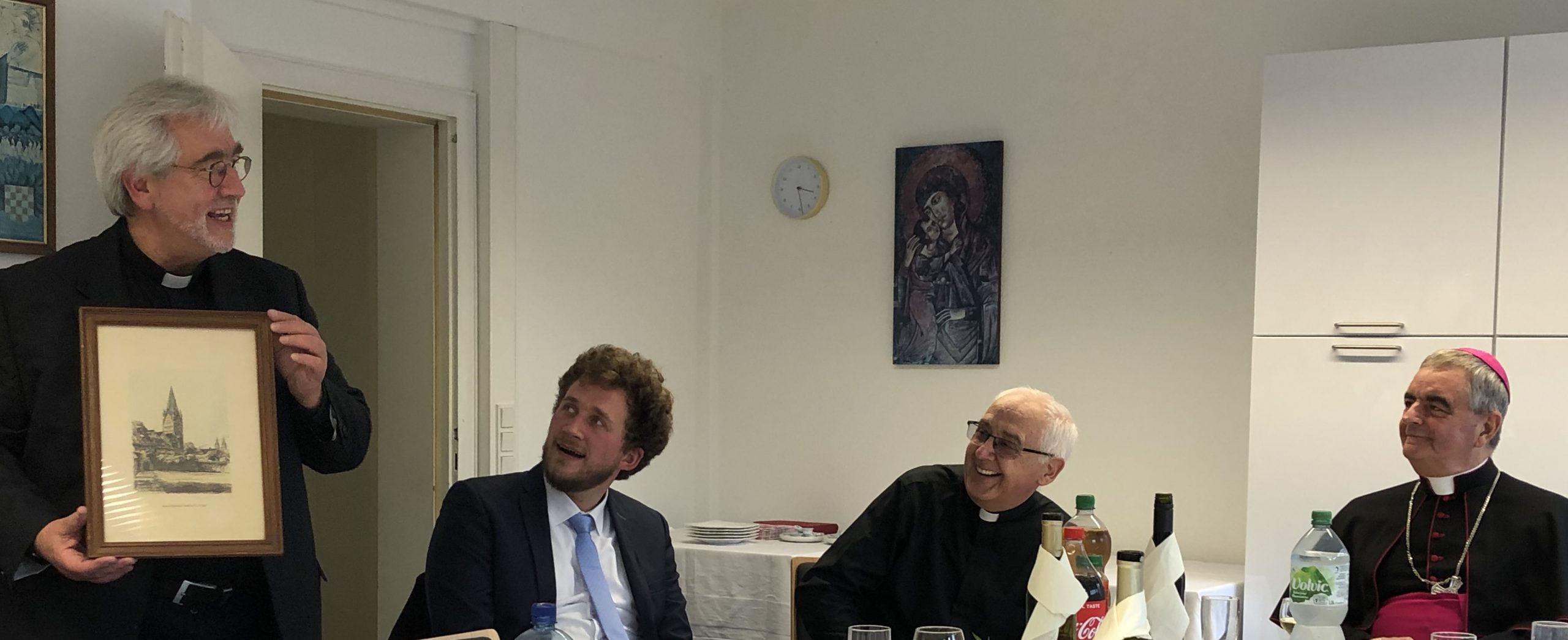 Tijekom ručka u misijskim prostorijama voditelj njemačke Pastoralalne jedinice Bielefeld-istok župnik Bernhard Brackhane je posebno čestitao bivšem voditelju misije vlč. Slavku Raki 50. obljetnicu misije i predao sliku katedrale iz Paderborna.