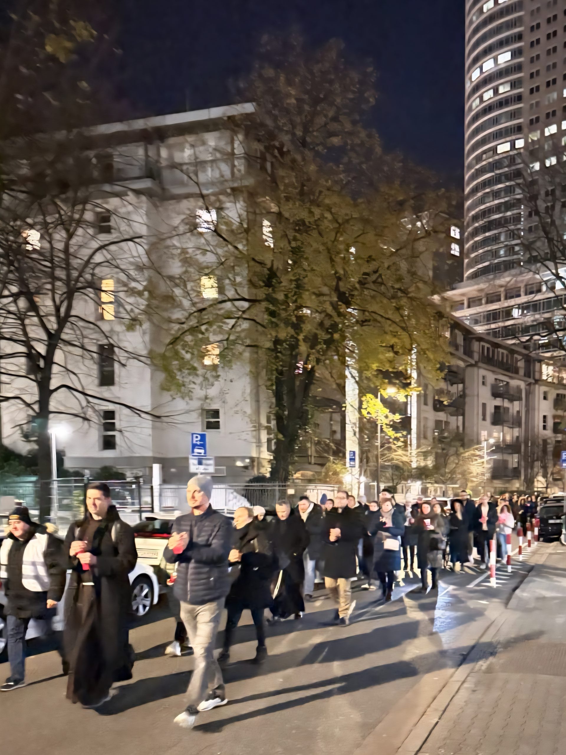Nakon mise, vjernici su se u koloni, sa svijećama u rukama i u molitvi, uputili prema Hrvatskom centru gdje je molitvu za sve žrtve Vukovara, Škabrnje i Domovinskog rata predvodio župnik HKŽ Frankfurt fra Petar Komljenović.