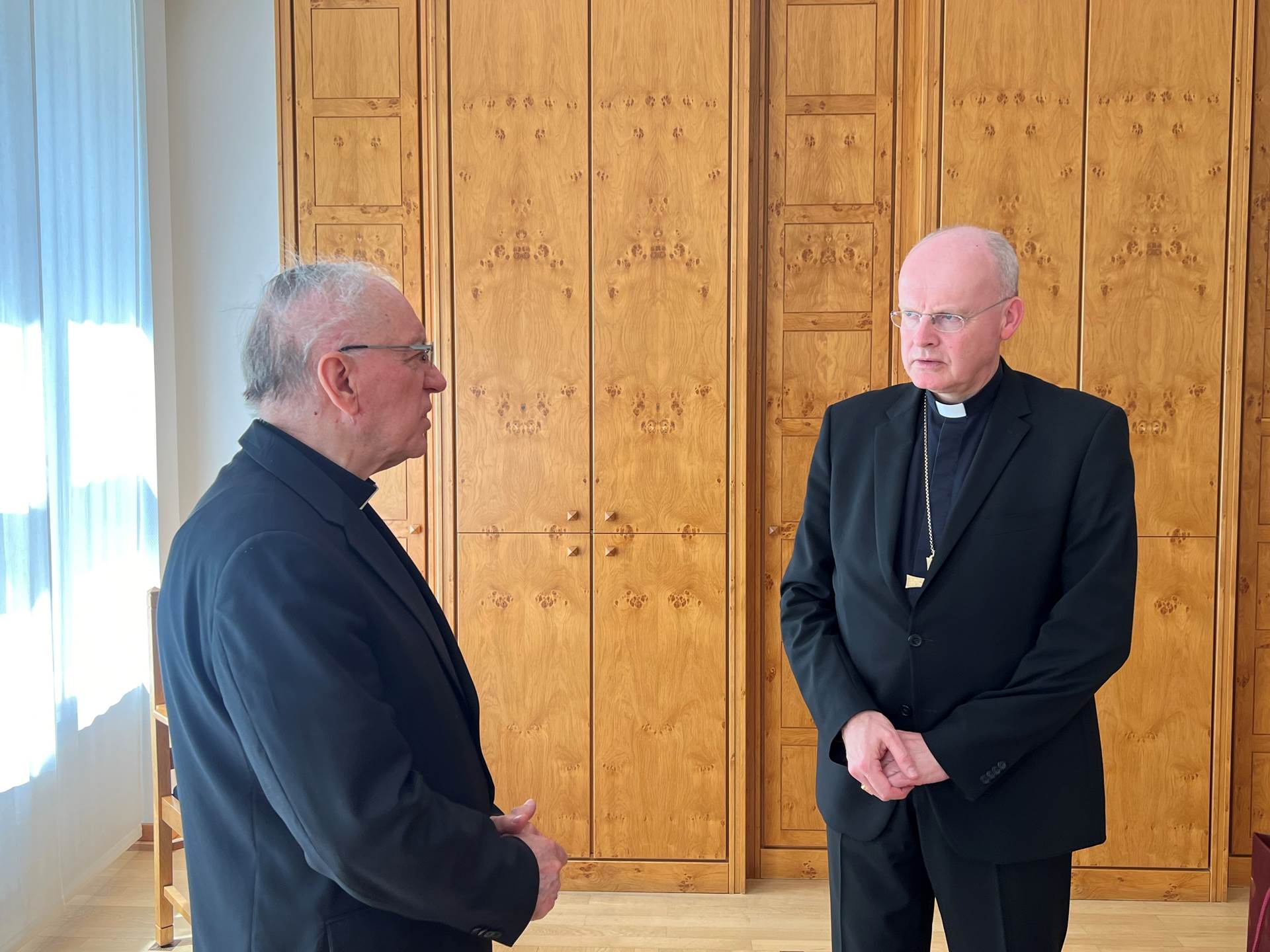 Potom se biskup Antun u hrvatskoj kapeli susreo sa župnikom Župe sv. Dionizija Benediktom Ogrodowczykom i četvoricom članova njegova Župnog pastoralnog vijeća te sa svećenikom Ivanom Cestarom, voditeljem Hrvatske katoličke zajednice u Essenu i dvojicom članova Župnog pastoralnog vijeća Župe sv. Kuzme i Damjana u koju su kao Hrvati uključeni. Razgledali su stanje kapele, vitraja i oslika Ive Dulčića. Župnik Ogrodowczyk obavijestio je kako je Župno pastoralno vijeće Župe sv. Dionizija donijelo odluku da hrvatska zajednica može iz kapele preuzeti vitraje i zidne oslike uz uvjet da se zatvore prozori s kojih će se vitraji ukloniti.