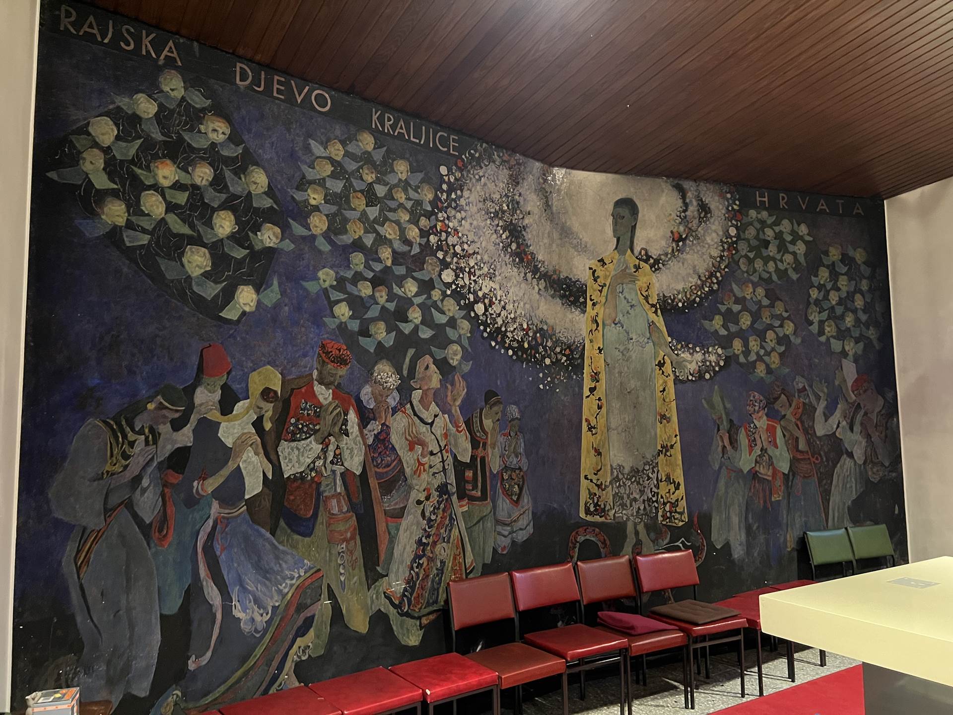 Uz hrvatske blaženike i svece na vitrajima, osobito je snažna oveća slika Kraljice Hrvata na zidu iznad oltara i križni put. Nekoliko godina traju nastojanja oko toga da se navedena umjetnička djela nekamo premjeste. Dopisom od 26. kolovoza 2020. umjetnikova supruga prof. Miroslava Dulčić, opunomoćila je požeškog biskupa emeritusa Antuna Škvorčevića da u njezino ime razgovara s essenskim biskupom msgr. Dr. Franz-Jozefom Overbeckom o tome da Požeška biskupija u slučaju rušenja hrvatske kapele u Essenu ili njezine prenamjene preuzme u vlasništvo navedena djela njezina supruga i pridruži zbirci njegovih umjetnina koje se već nalaze u Dijecezanskom muzeju Požeške biskupije i budu njezin sastavni dio, ili da se smjeste u drugi prikladni prostor povezan sa spomenutim Muzejom.