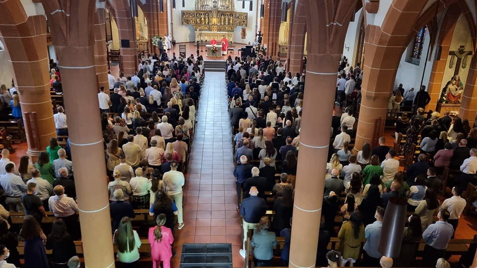 Am Sonntag, dem 08. Mai 2022 spendete der Apostolischer Nuntius aus Berlin der Erzbischof Dr. Nikola Eterovic das Firmsakrament an 52 Jugendliche aus dem gesamten Gebiet der Gemeinde, Gießen, Alsfeld, Bad Neuheim, Nidda und Karben/Kloppenheim. Der Apostolische Nuntius hat am Anfang seiner Predigt sich selbst und seinen Dienst des Nuntius vorgestellt. Er ermutigte die Jugendliche in Verbindung mit Gott und der Kirche zu bleiben. Da dieser Sonntag auch der Sonntag des guten Hirten war, hat der Apostolische Nuntius seine Hoffnung und Wunsch geäußert, dass sich jemand von den Firmlingen für einen geistlichen Beruf entscheiden würde.
