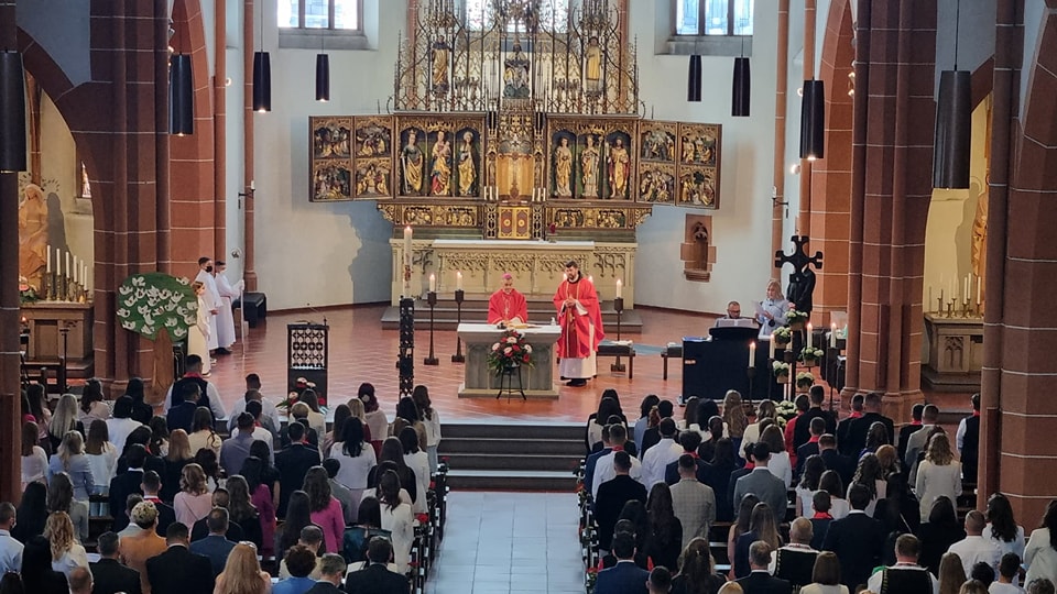 U nedjelju, 08. svibnja 2022. apostoslki nuncij u SR Njemačkoj iz Berlina, nadbiskup dr. Nikola Eterović, podijelio je sakramenat sv. potvrde krizmanicima Hrvatske katoličke zajednice Gießen. U prepunoj Crkvi sv. Bonifacija u Gießenu sakramenat sv. potvrde primilo je 52 krizmanika, a svečanoj liturgiji nazočilo je oko 800 vjernika. Kizmanici su bili iz Gißena i ostalih filijalnih mjesta, Karben/Kloppenheima, Bad Nauheima, Nidde i Alsfelda.Apostolski nuncij nadbiskup Eterović na početku svoje propovijedi predstavio je sebe osobno i svoju službu apostolskog nuncija. Potakao je krizmanike da ostanu povezani s Bogom i Crkvom i tako nastave djelovanje Duha Svetoga, čije darove primaju u sakramentu sv. potvrde. Budući da je 8. svibnja bila i nedjelja Dobrog Pastira, nadbiskup Eterović izrazio je i nadu i želju da se netko od krizmanika odluči i za duhovni poziv.