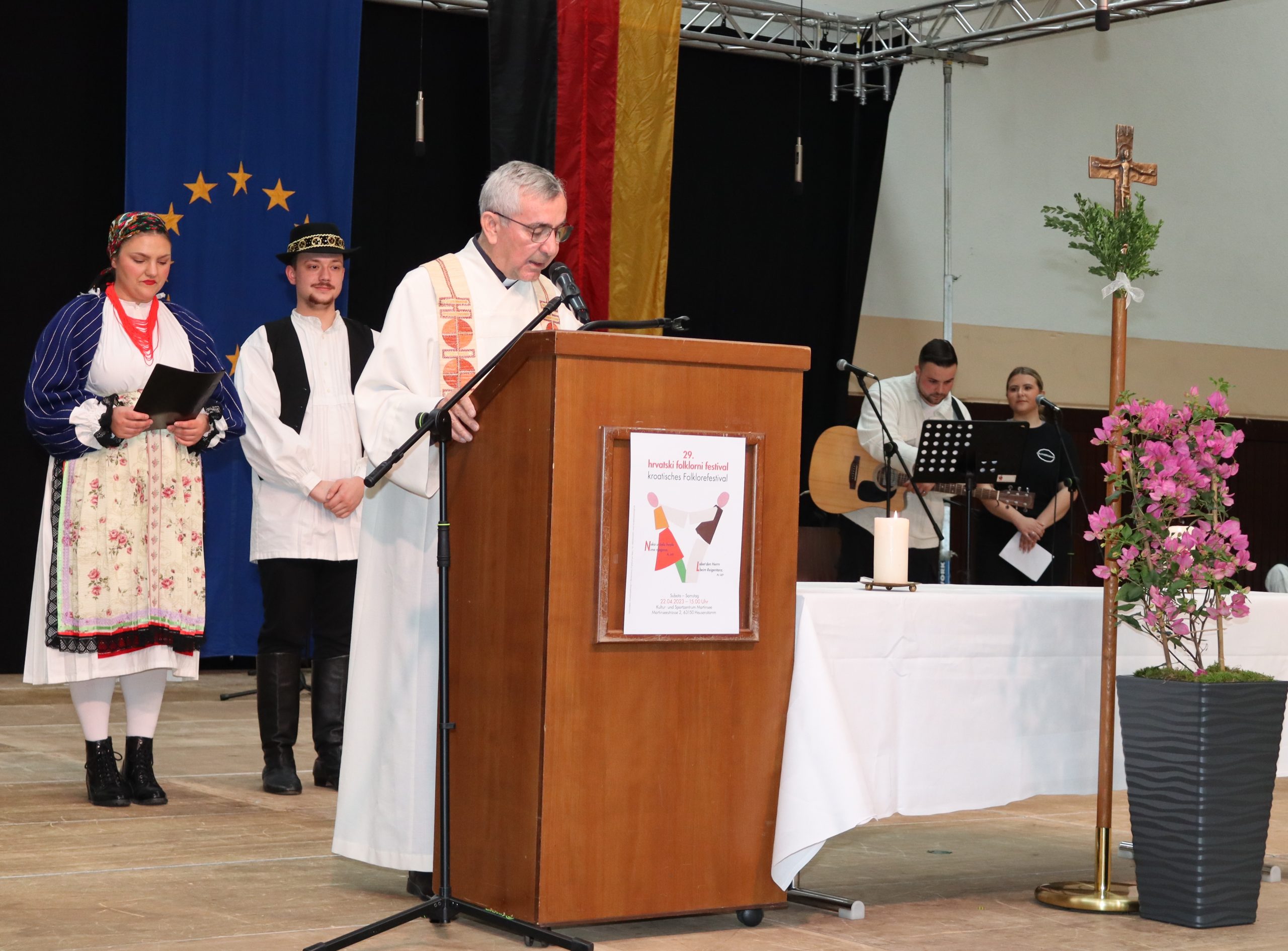 Tradicionalni 29. hrvatski folklorni festival održan je u subotu 22. travnja u Kulturnom i sportskom centru „Martinsee“ u Heusenstammu kod Offenbacha na Majni, u organizaciji Hrvatskoga dušobrižničkog ureda iz Frankfurta na Majni. Na festivalu je nastupilo trinaest folklornih skupina odraslih iz hrvatskih katoličkih misija (HKM), župa (HKŽ) i zajednica (HKZ) iz Njemačke. Prije festivala slavljena je Služba riječi, koju je predvodio delegat za hrvatsku pastvu u Njemačkoj vlč. Ivica Komadina, uz glazbenu pratnju Katarine Mihaljević i Noaha Mede iz HKZ Darmstadt.