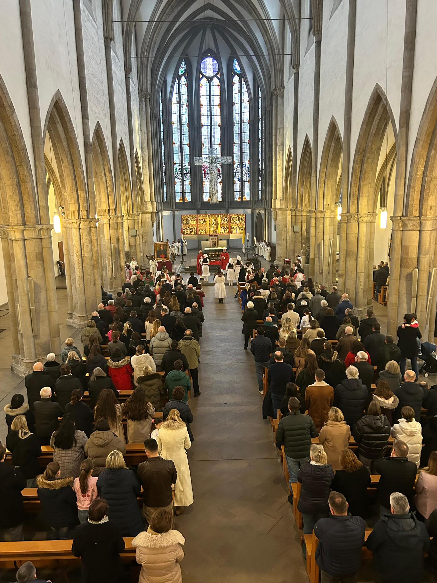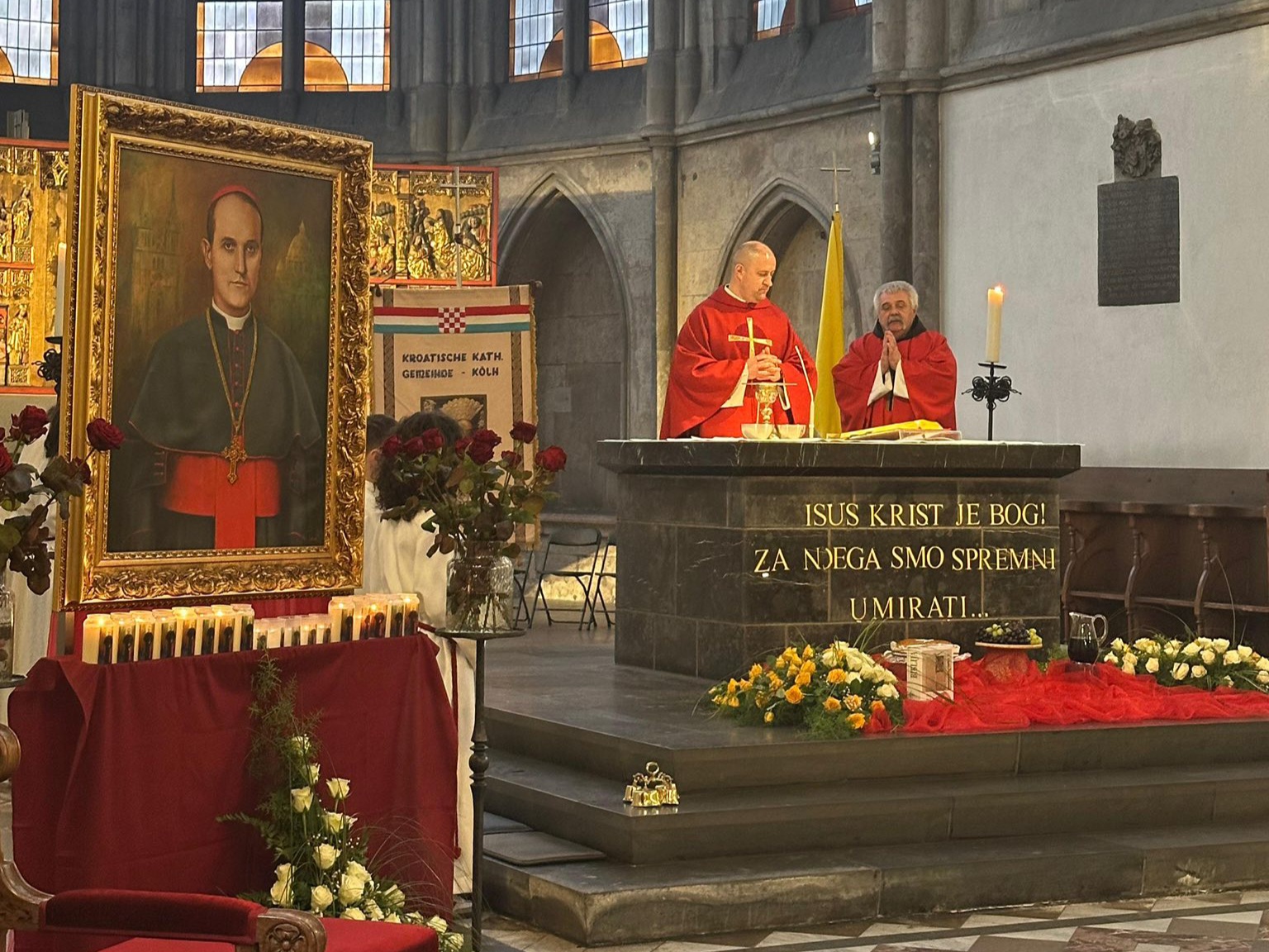 U nedjelju, 8. veljače 2026., u Hrvatskoj katoličkoj misiji Köln svečano je proslavljen blagdan nebeskoga zaštitnika, blaženoga Alojzija Stepinca. Misnim slavljem u 12 i 30 u Minoritenkirche predsjedao je i propovijedao župni vikar dr. fra Ivan Režić, u koncelebraciji s fra Vukom Buljanom, voditeljem Misije u Kölnu. Na početku misnoga slavlja djeca i folkloraši donijeli su svijeće pred blaženikovu sliku uz prigodnu glazbenu pratnju.