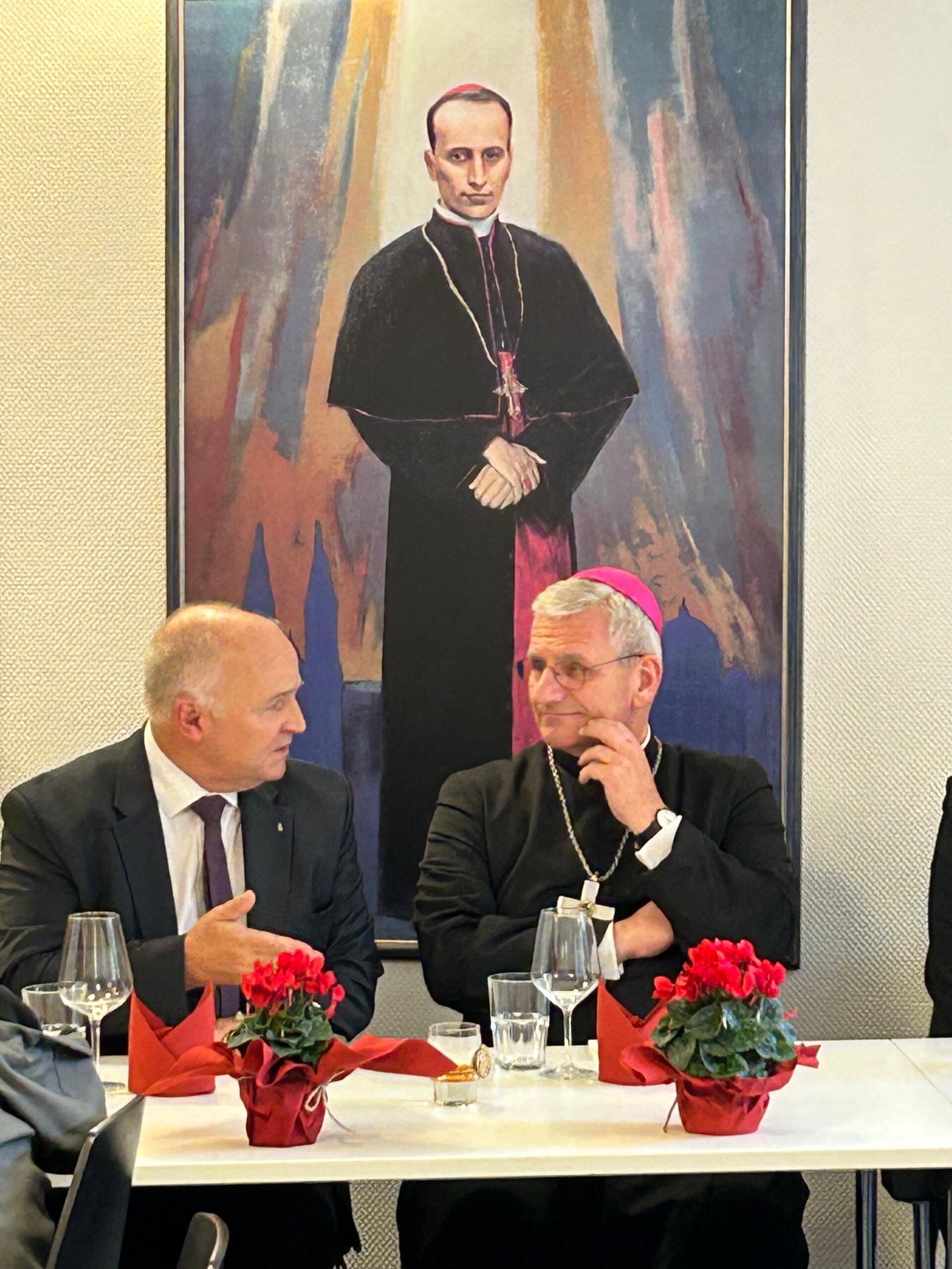 Nakon mise održan je zajednički objed i susret s predstavnicima hrvatskih zajednica iz Kölna, Bonna, Leverkusena, Bergheima i Bielsteina. U otvorenom i srdačnom razgovoru razmijenjena su iskustva i prijedlozi za unaprjeđenje djelovanja Hrvatske katoličke misije Köln. Biskup Schwaderlapp zahvalio je vodstvu i vjernicima HKM-a na gostoprimstvu, potaknuvši ih da nastave hrabro svjedočiti svoju vjeru i biti „misionari i njemačkih zajednica“.