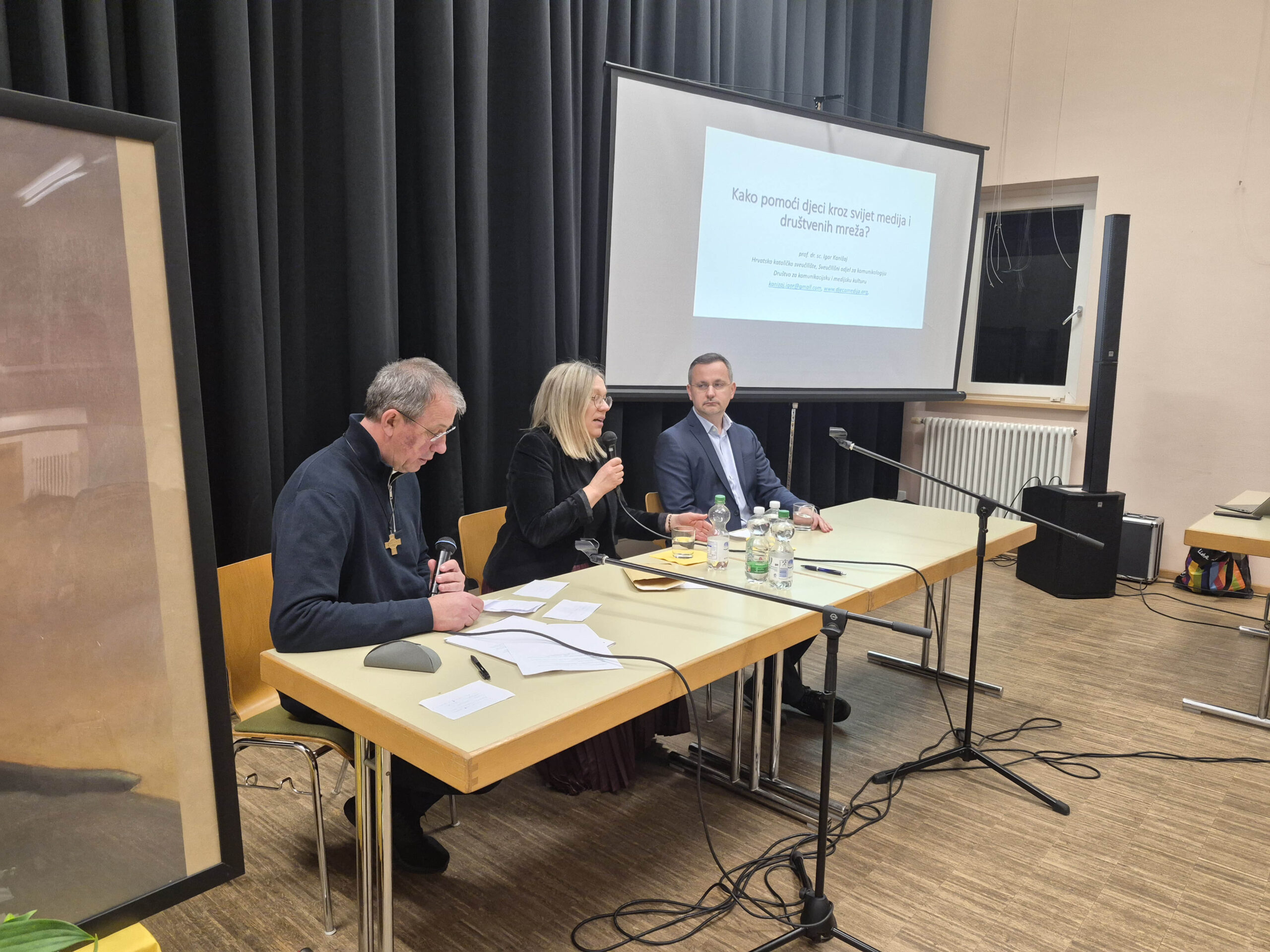 Uslijedilo je predavanje dr. Igora Kanižaja „Kako pomoći djeci kroz svijet medija i društvenih mreža?“, u kojem je upozorio na ranu i intenzivnu izloženost djece ekranima te na opasnost razvoja ovisnosti. Istaknuta je nezamjenjiva uloga roditelja kao prvih medijskih odgojitelja, potreba za jasnim pravilima, otvorenom komunikacijom i svjesnim stvaranjem vremena bez ekrana.