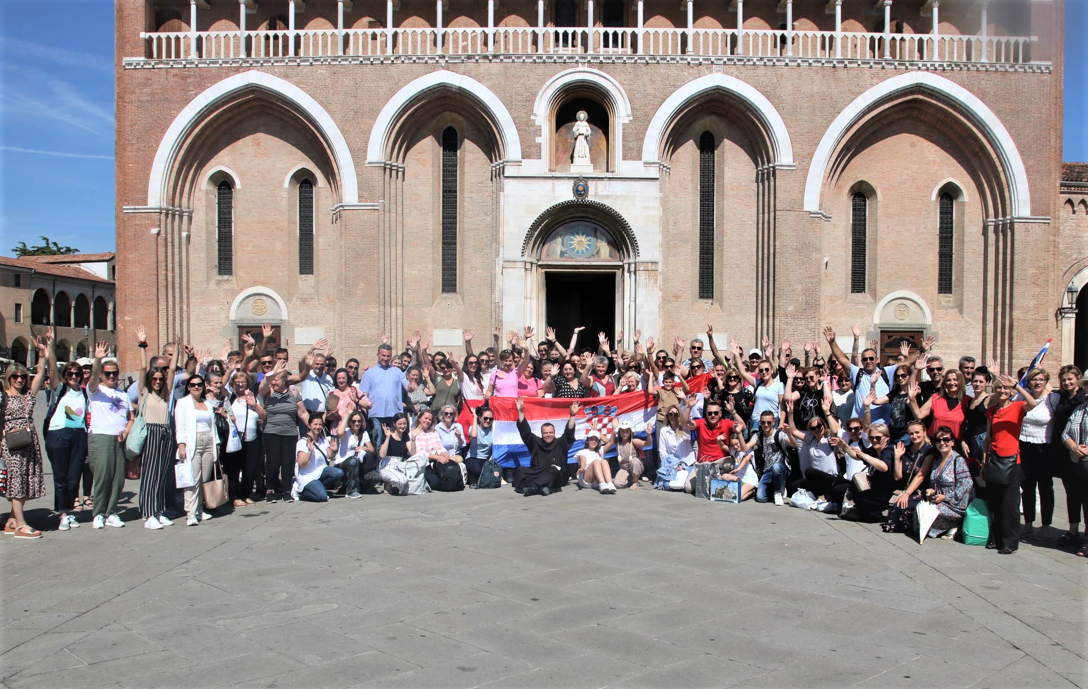 U Padovu smo stigli u ranim jutarnjim satima. Sa nešto više od 200 tisuća stanovnika, Padova je treći po veličini grad talijanske pokrajine Veneto, odmah iza Venecije i Verone. Padova je „skriveni biser ovog dijela Italije“ u sjeni ovih dvaju gradova samo zato što nema tako jaku pozadinsku priču kao Verona i Venecija. Leži na rijeci Bacchiglione. Padova ima svoju bogatu povijest i veliki niz kulturnih i povijesnih znamenitosti. Jedan je od najstarijih gradova u Italiji. U gradu se nalazi, gotovo 800 godina staro, Sveučilište (Universita ‚di Padova), između ostalog poznato po tome što je na njemu predavao i Galileo Galilei. Padovanski „Orto Botanico di Padova“ je prvi akademski botanički vrt na svijetu, otvoren 1545. godine.  Slavni talijanski slikar, arhitekt i kipar Giotto di Bondone (1267. do 1337.) oslikao je u Padovi glasovitu Arena-kapelu, pravog naziva Kapela Scrovegni čiji se ciklus fresaka smatra početakom revolucionarnog razvoja u povijesti zidnog slikarstva. Zbog toga su ove freske 2021. godine upisane na UNESCO-v popis mjesta svjetske baštine u Europi. Padova je poznata kao grad u kojem je živio pjesnik Dante Alighieri, a najpoznatija je ipak po svetom Antunu Padovanskom koji je živio u Padovi i čiji se grob nalazi  u velebnoj „Basilica di Sant’Antonio“ u gradu. Za nas Hrvate posebno je važna činjenica da je u kapucinskom samostanu, u blizini bazilike svetog Antuna, pune 33 godine živio i naš hrvatski svetac, sveti Leopold Bogdan Mandić čije smo svetište pohodili odmah po dolasku u Padovu.