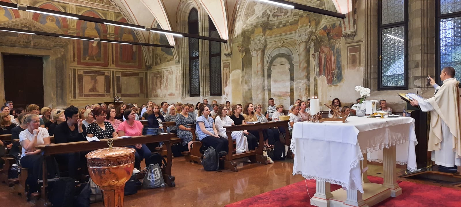 Nakon jutarnje svete mise, koju su slavili oci kapucini, u crkvi svetišta, fra Petar nam je kratko predstavio život sv. Leopolda, sveca pomirenja i ekumenizma. Poslije toga je predvodio pokorničko bogoslužje za nas hodočasnike.