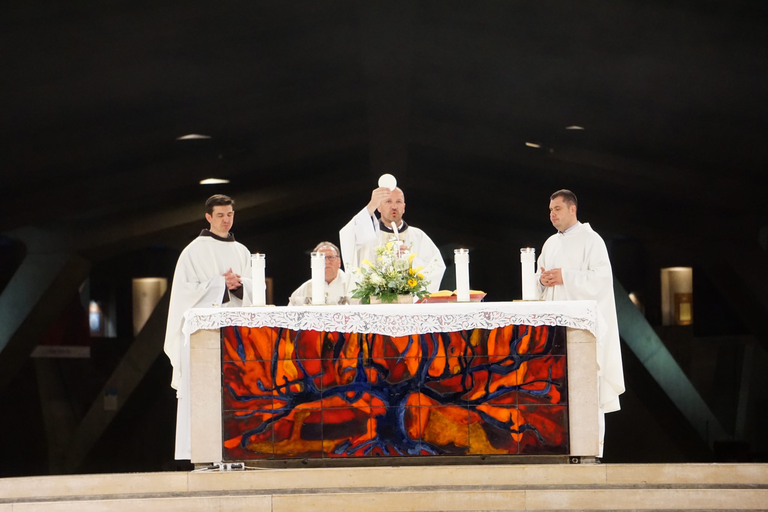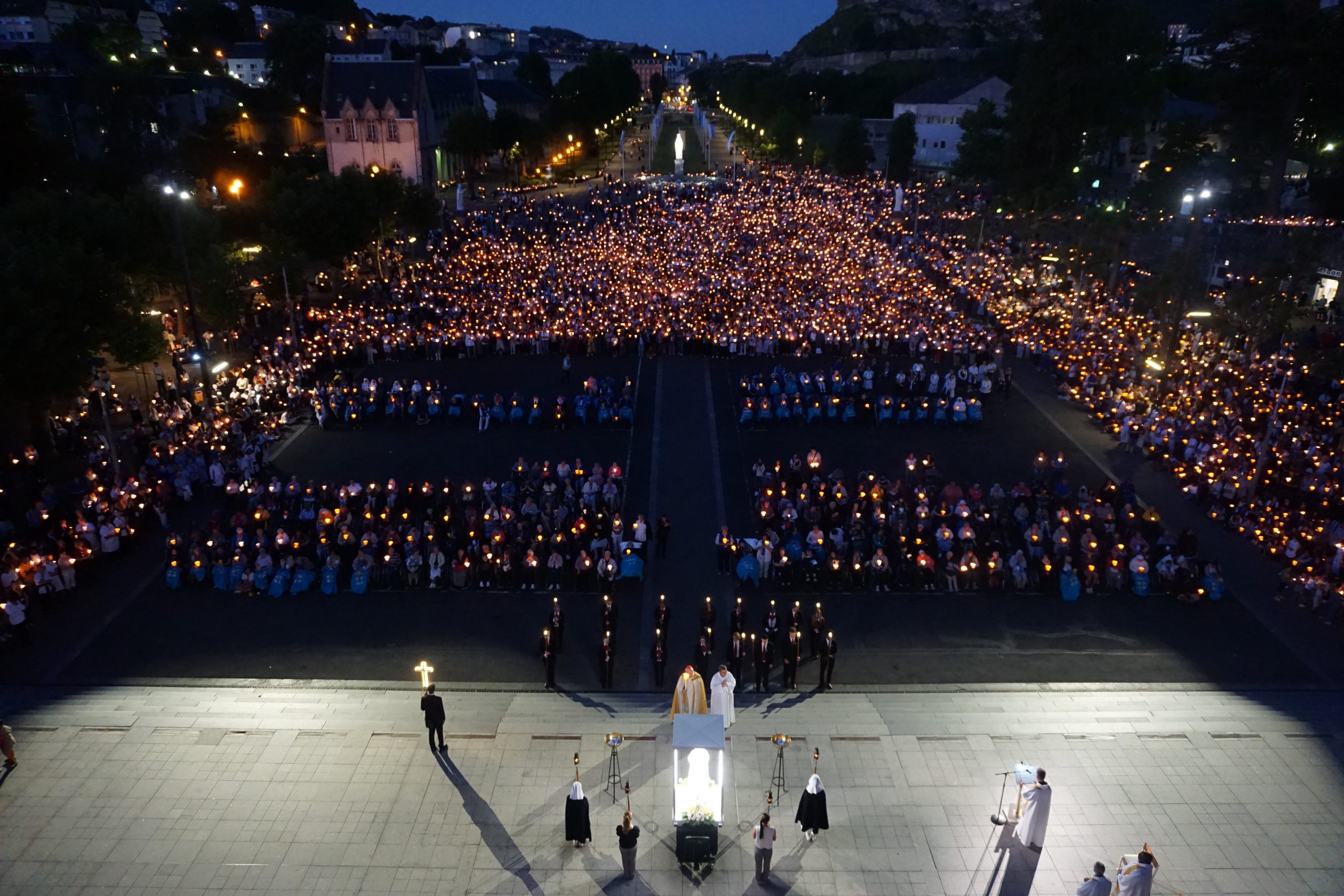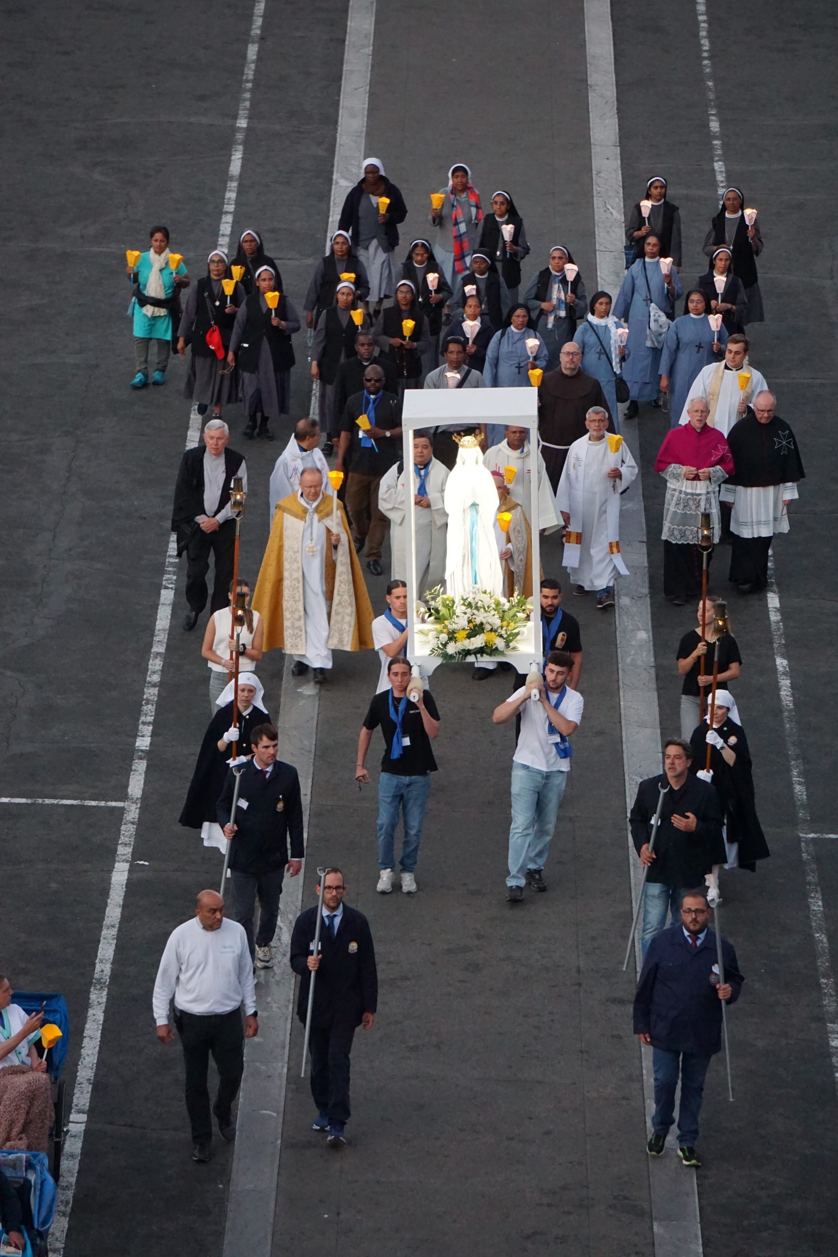Liturgijsko pjevanje predvodila je s. Pavlimira Šimunović, pastoralna suradnica HKŽ Frankfurt, sa zborom sastavljenim od pjevača iz različitih hrvatskih misija. Dan je zaključen svečanom večernjom procesijom sa svijećama u prostoru svetišta. U atmosferi molitve i sabranosti, hodočasnici su, moleći krunicu na više jezika i pjevajući pjesme u čast Blaženoj Djevici Mariji, u molitvenoj povorci pratili Gospin kip.