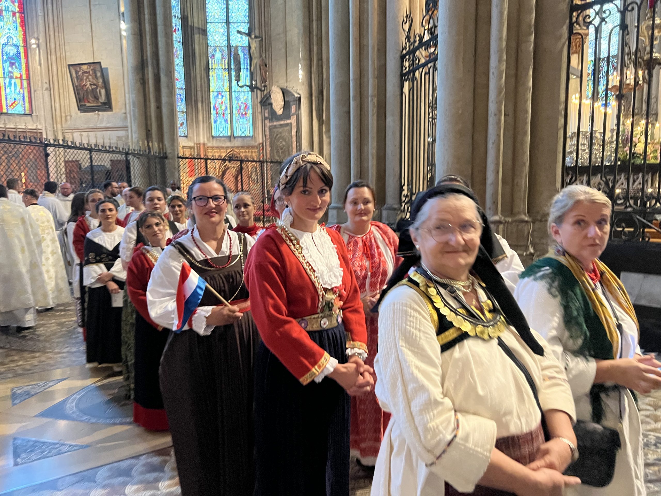 Tijekom misnog slavlja pjevanje i sviranje animiralo je više različitih zborova, a u prinosu darova sudjelovale su, između ostalih, i dvije djevojke odjevene u hrvatske narodne nošnje prinijevši tradicionalne hrvatske proizvode. Barjake u procesiji nosili su muškarci iz hrvatskih katoličkih misija, praćeni djevojkama i ženama iz hrvatskih katoličkih misija Köln, Wuppertal i Düsseldorf, odjevenima u prelijepe hrvatske narodne nošnje.