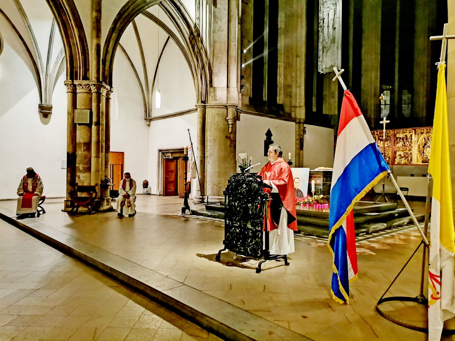 U srijedu, 10. veljače HKM Köln proslavila je svog nebeskog zaštitnika bl. Alojzija Viktora Stepinca. Središnja proslava Stepinčeva bila je u Kölnu u Minoritenkirche, a započela je u 18 sati molitvom krunice Božanskog milosrđa te molitvama Blaženiku za zagovor. U 18:30 sati započela je procesija kroz crkvu na čelu koje su bili ministranti s kadionikom, križem i svijećama, a hrvatski i vatikanski barjak te barjak Misije i lik Blaženika nosili su folklorašice i folkloraši. Misno slavlje predvodio je fra Tomislav Dukić, voditelj HKM Düsseldorf, uz koncelebraciju don Marijana Uke voditelja albanske misije sa sjedištem u Düsseldorfu, te fra Vuka Buljana i fra Denisa Šimunovića. Ljepoti ovog slavlja doprinio je Veliki zbor pod vodstvom s. Renate i Mare Rice. I ove godine svojom nazočnošću posebnu čast našoj cijeloj Misiji i bl. A. Stepincu iskazao je Generalni konzul Republike Hrvatske u Düsseldorfu doc. dr. sc. Ivan Bulić, koji je argumentirano reagirao u obrani Stepinca na intervju gospođe Čalić objavljen na portalu katholisch.de dana 8. prosinca 2020.Ovogodišnja skromna proslava na vani možda je učinila čuda u nama samima. Možda nas je ohrabrila i ojačala kroz promatranje lika Blaženika na poseban način promatrajući njegovu vjernost Bogu i Katoličkoj Crkvi, te hrvatskom narodu i stožernim krepostima vjeri, nadi i ljubavi o kojima smo posebno razmišljali u trodnevnoj duhovnoj obnovi.