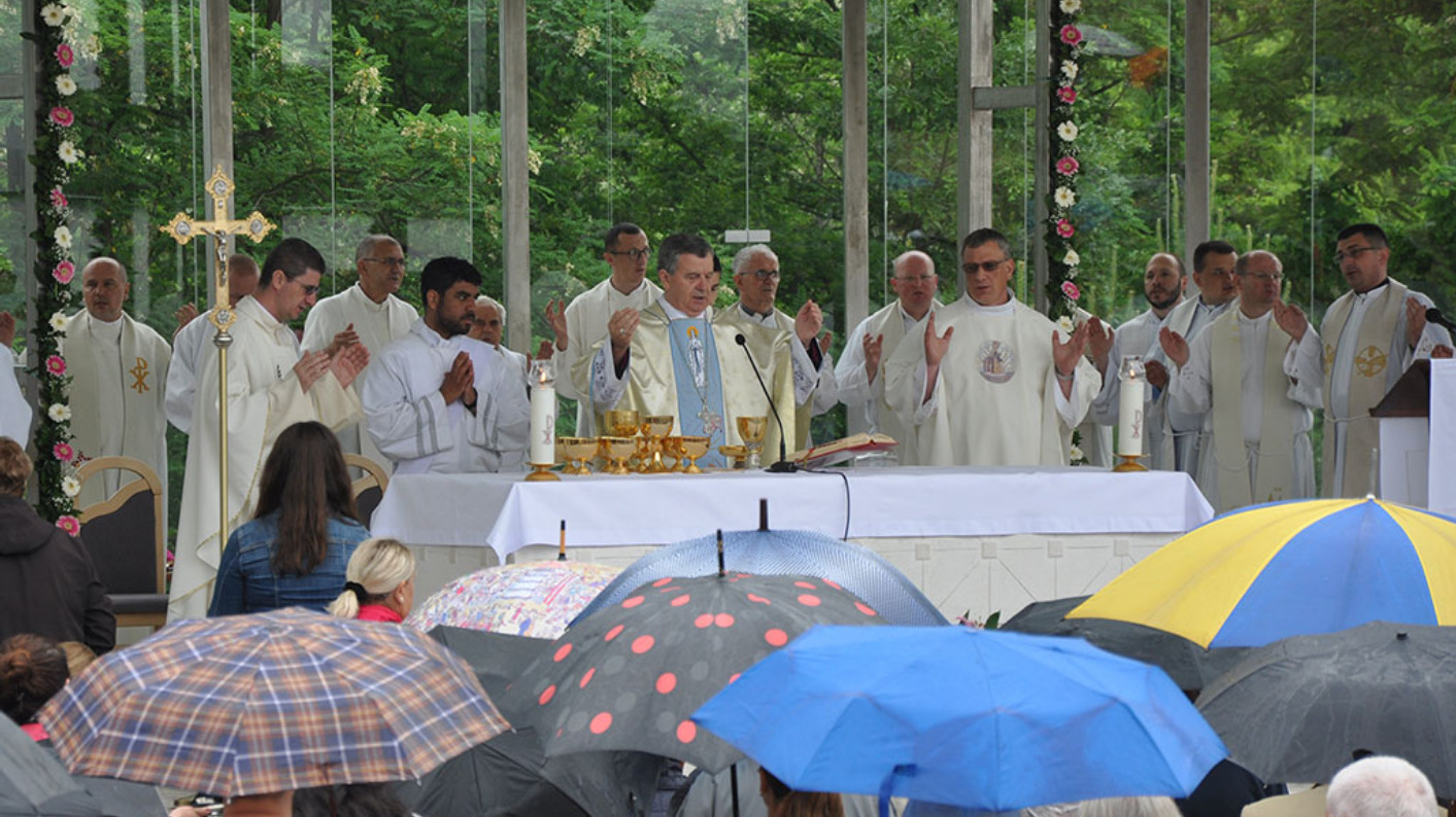 Dolaskom na uzvišenje – brdo Kondžilo, na kojem se nalazi vanjski oltar i kapelica, započelo je euharistijsko slavlje koje je predvodio mons. Vukšić u koncelebraciji s 20-ak svećenika, među kojima su bili generalni vikar Vrhbosanske nadbiskupije mons. Slađan Ćosić, ravnatelj NCM-a vlč. Šimo Maršić i preč. Salapić. Okupljene je na početku pozdravio nadbiskup Vukšić, uputivši poseban pozdrav mladima koji obilježavaju svoj dan.