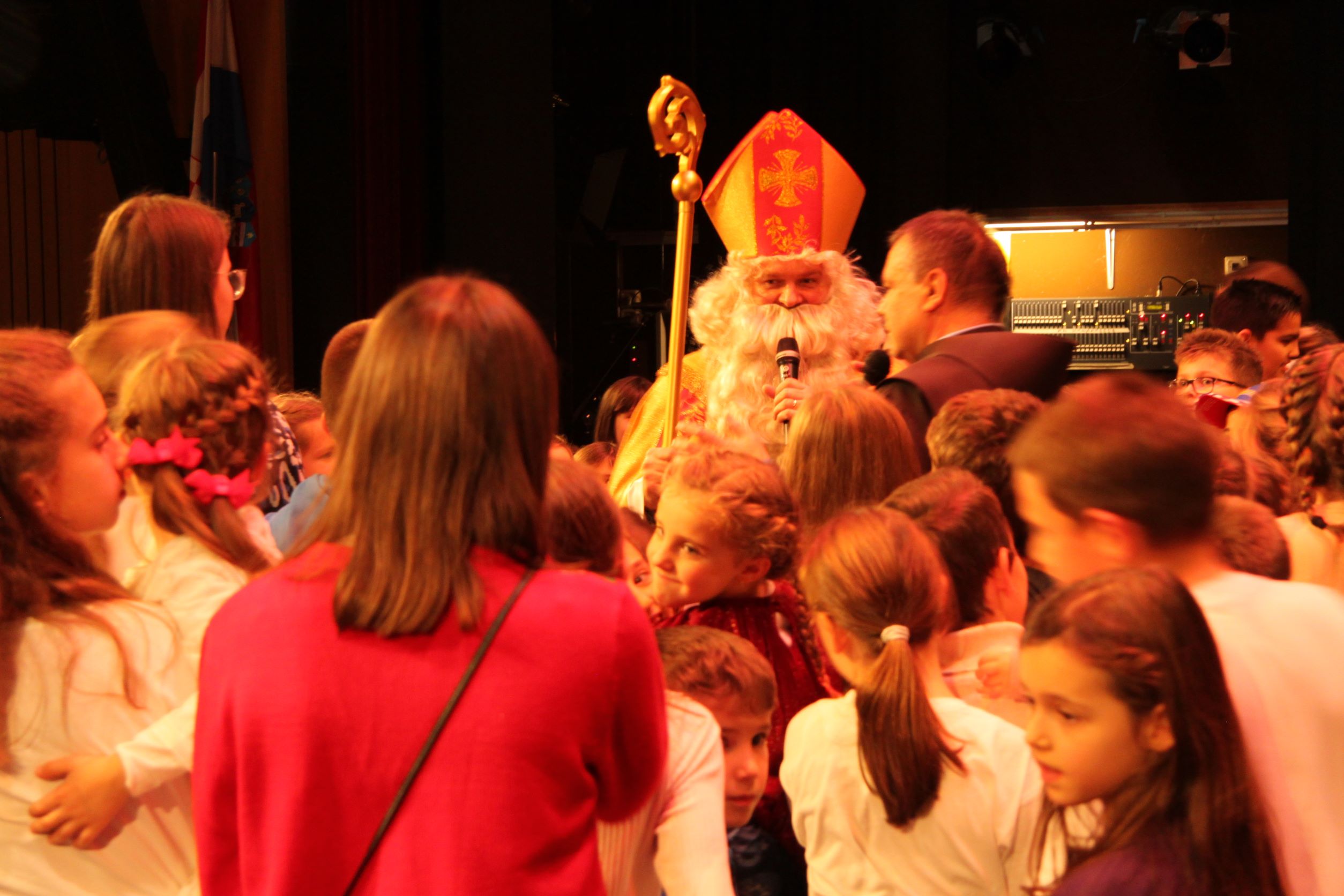 Nakon nastupa župnih skupina na pozornicu je uza zvukove zvončića došao među djecu sv. Nikola. Uputio im je riječi pozdrava i potaknuo ih da uvijek nastoje živjeti poruku Božića u svojim obiteljima nakon čega im je podijelio svoje darove.