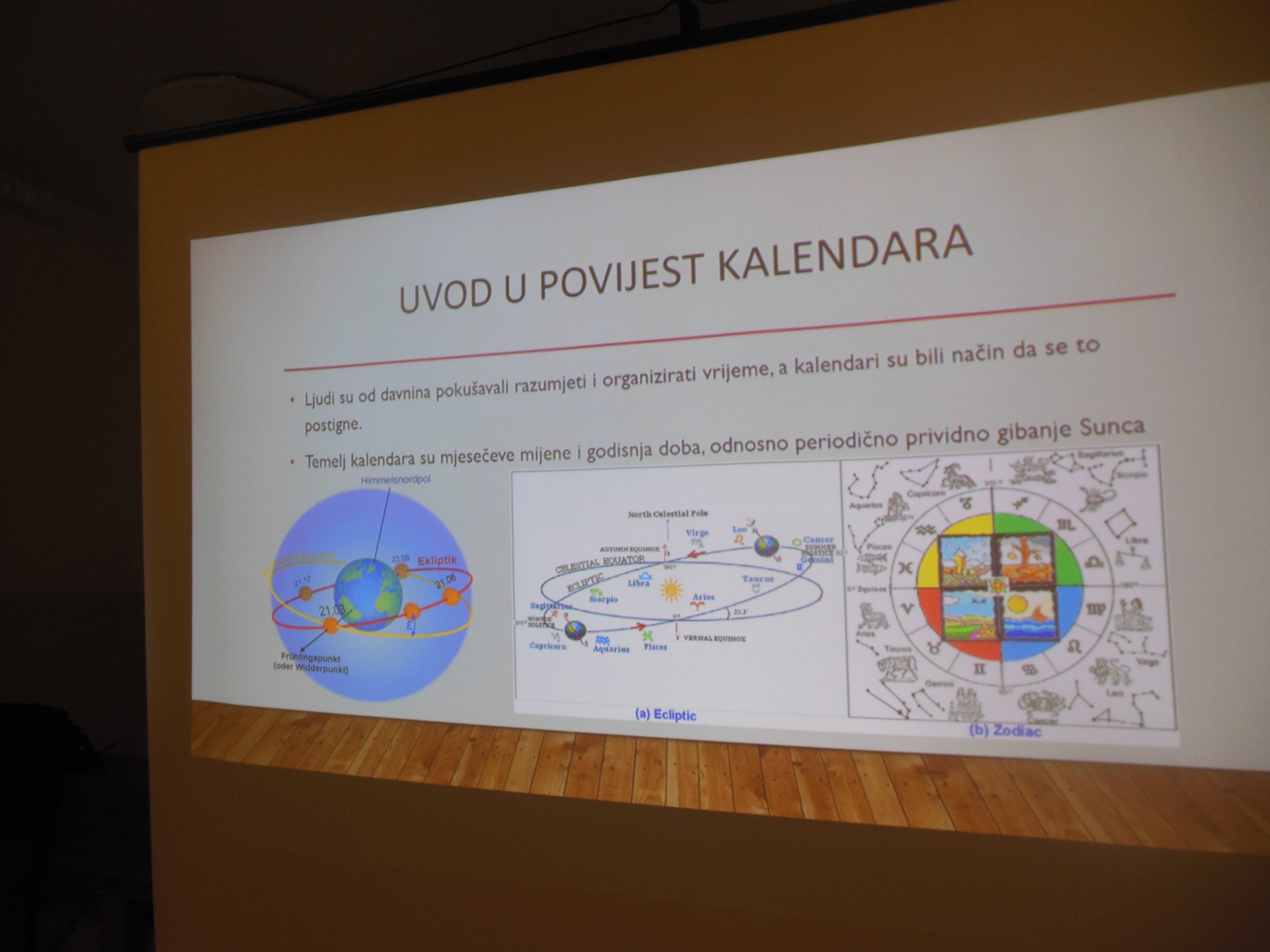 U uvodnoj riječi profesor je kazao, da su ljudi od davnine pokušavali razumjeti i organizirati vrijeme, a kalendari su bili način da se to i postigne.