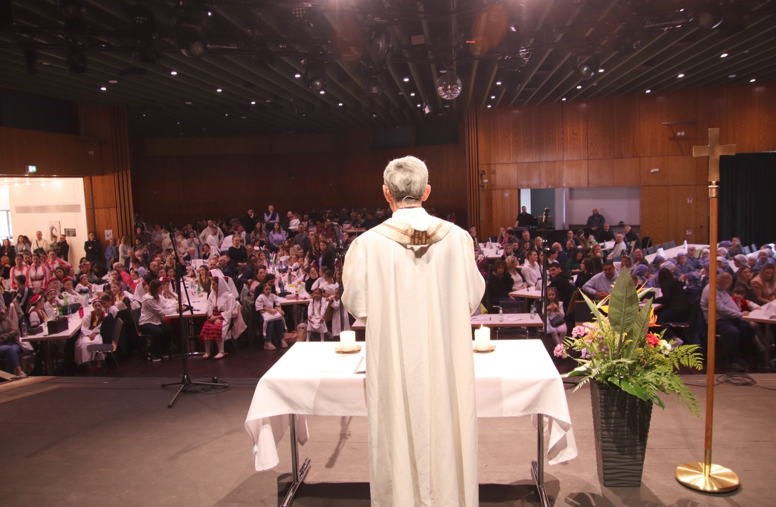 Ovogodišnji Dječji folklorni festival, okupio je preko petsto sudionika iz trinaest hrvatskih katoličkih misija i zajednica. Festival je započeo službom riječi koju je predslavio vlč. Ivica Komadina, delegat Dušobrižništva za Hrvate u Njemačkoj. Nakon intoniranja hrvatske himne koju su otpjevale sestre Magdalena i Gabrijela Radoš, vlč. Ivica je službeno otvorio Festival izrazivši radost što hrvatske katoličke misije i zajednice u Njemačkoj uz duhovnu skrb za hrvatske vjernike, njeguju i podržavaju očuvanju hrvatske kulturne tradicije, pritom posebno zahvalivši voditeljima folklornih skupina te djeci koja su se pripremala za sudjelovanje na folklornom festivalu.