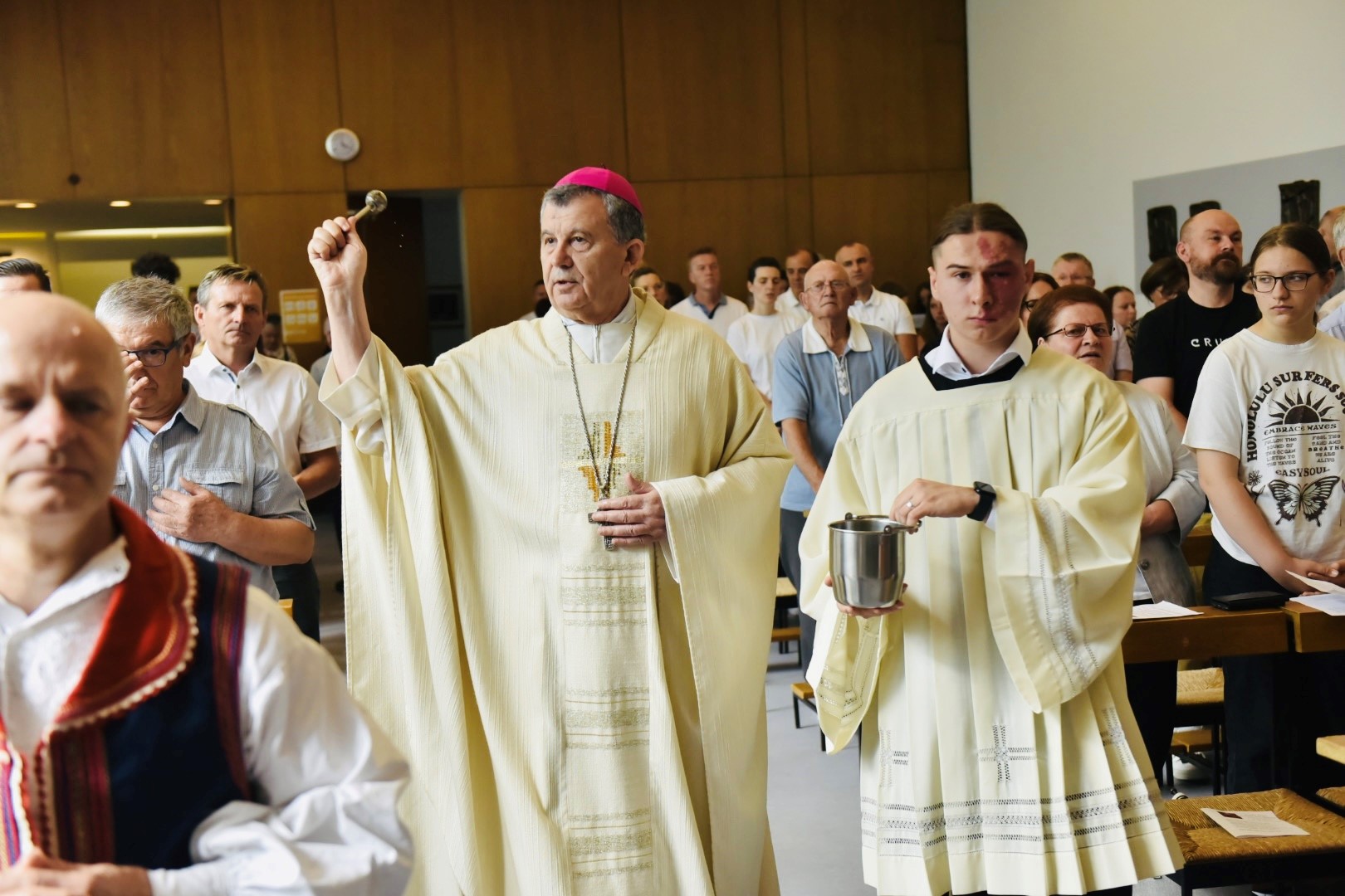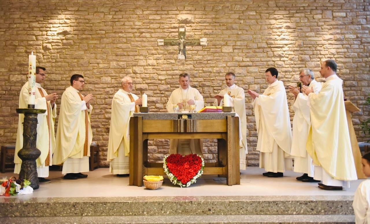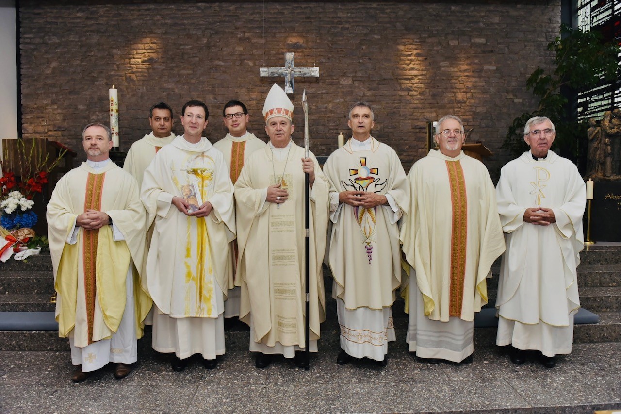 U subotu, 09. srpnja 2022. g., Hrvatska katolička zajednica u Aalenu proslavila je obred posvete oltara u kapeli Sv. Mihaela, gdje se redovito okupljaju vjernici ove zajednice na vjerska slavlja. Euharistijsko slavlje, uz obred posvete oltara, prevodio je mons. Tomo Vukšić, nadbiskup metropolit vrhbosanski i apostolski administrator Vojnog ordinarijata u BiH, u zajedništvu s dušobrižnikom spomenute zajednice vlč. Vilimom Koretićem, župnikom njemačke župe Sv. Marije u Aalenu vlč. Wolfgangom Sedlmeierom, kojoj pripada i ova hrvatska katolička zajednica, vlč. Ivicom Komadinom, delegatom za hrvatsku pastvu u Njemačkoj, te uz još nekolicinu svećenika. Ceremonijama je ravnao vlč. Branko Koretić, župnik u Ivanić-Gradu. Na zajednici su bili prisutni i vjernici iz susjednih hrvatskih katoličkih zajednica, kao i vjernici Nijemci.