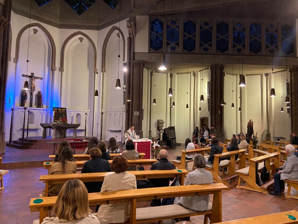 Na svetoj misi koja je bila u Mauritiuskirche u 18.30 sati, a koju je predvodio fra Denis Šimunović, duhovni asistent Frame, pred nazočnim župljanima i preko trideset i pet framaša u Framu Köln primljeno je devet djevojaka, a prva obećanja je dalo deset mladih.