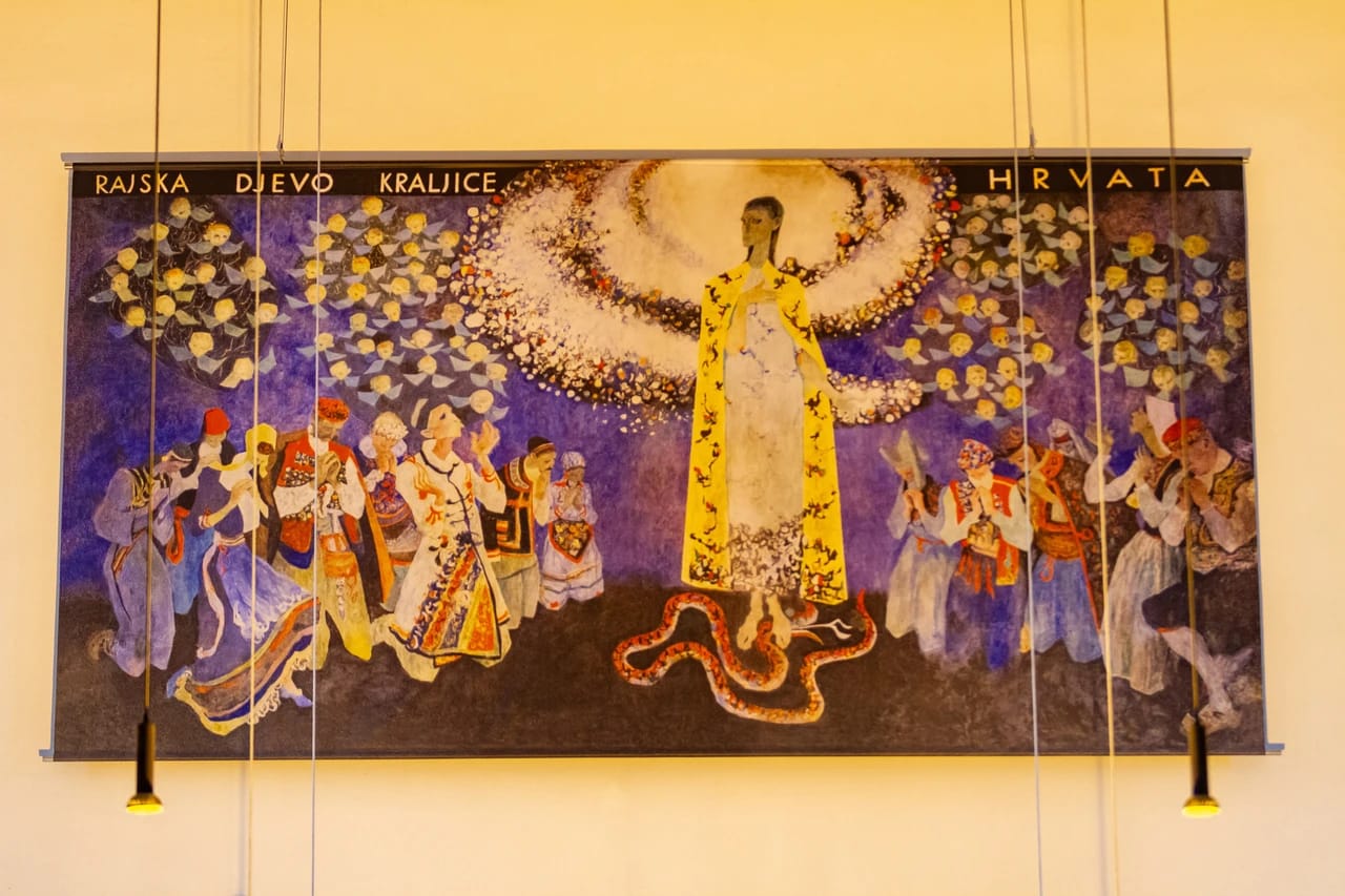 Sam proces pregovora oko prenošenja vitraja iz „Hrvatskog centra“ u crkvu sv. Hedvige s biskupijom Essen i realizacije projekta trajao je punih pet godina. Osim vitraja blaženoga Stepinca, u crkvi se nalazi i platno s preslikom freske „Rajska Djevo, Kraljice Hrvata“ koja je također djelo velikog hrvatskog slikara Ive Dulčića te je od neprocjenjive umjetničke vrijednosti, a original se nalazi u misijskoj kapelici.