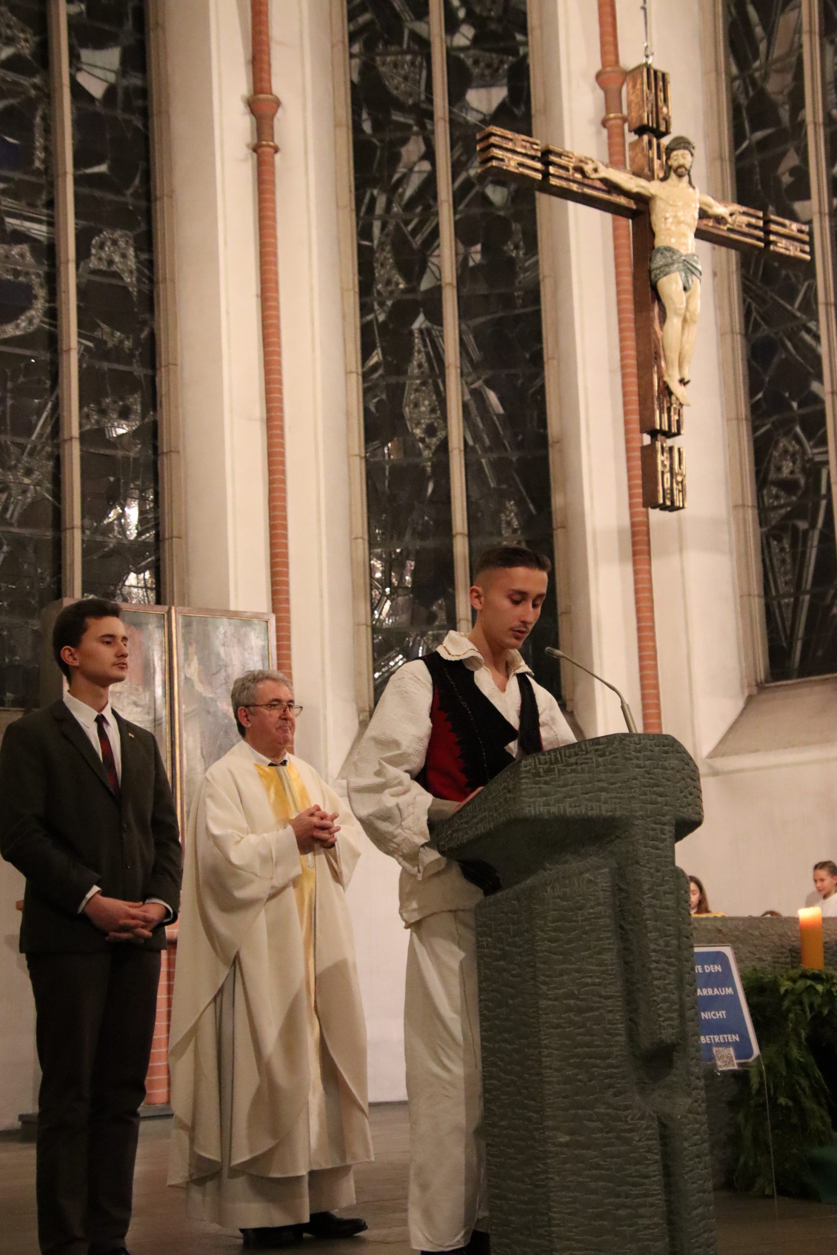 Njemački župnik dr. Jürgen Wätjer se također obratio s nekoliko riječi hrvatskoj zajednici. „Lijepo je što smo danas okupljeni u ovoj crkvi i što u ovome svijetu zajedno svjedočimo katoličku vjeru što nije lako u trenutnim okolnostima.“, rekao je župnik, unaprijed zaželjevši svima blagoslovljeni Božić.