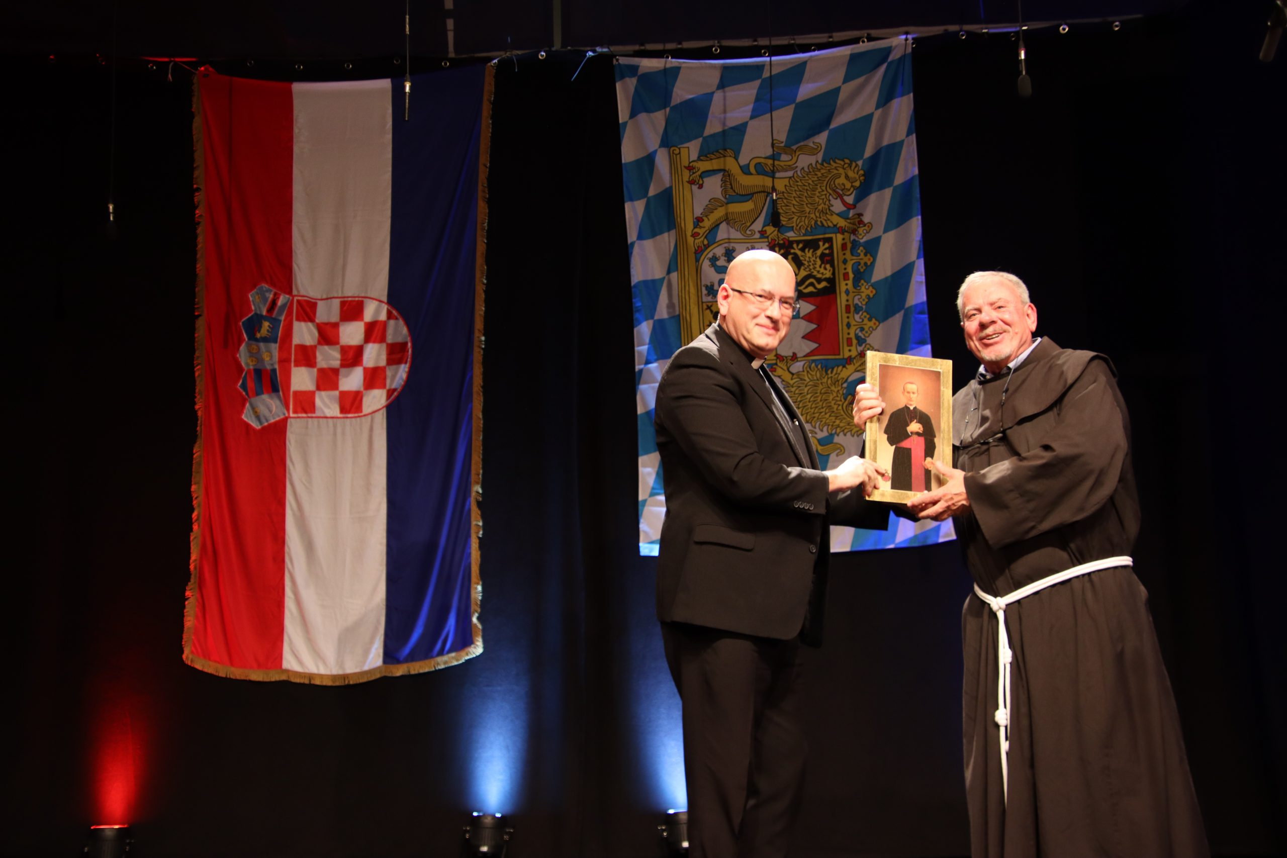Uime svih hrvatskih biskupa i biskupa Bosne i Hercegovine, prisutne je pozdravio vlč. dr. Tomislav Markić, nacionalni ravnatelj Dušobrižništva za Hrvate u inozemstvu, koji je povezao proslavu 50 godina župe Rosenheim s 25. godišnjicom proglašenja Alojzija Stepinca blaženim koja se istoga dana proslavila u Mariji Bistrici gestom prosipanja ružinih latica iz helikoptera, što je vlč. Markić povezao s Rosenheimom koji etimološki u svome imenu ima riječ ruža (Rosen). Čestitajući svima, a posebno voditelju fra Frani Čuguri, župi Rosenheim je poklonio sliku s likom bl. Alojzija Stepinca.