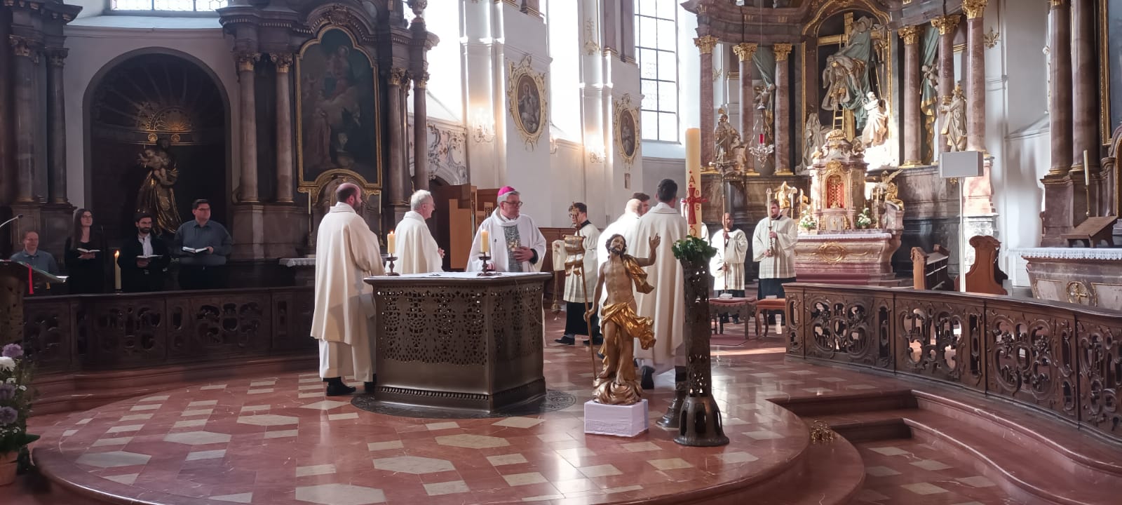 Svetu misu u sjemenišnoj augustinskoj crkvi u Mainzu u večernjim satima predslavio je mjesni biskup dr. Peter Kohlgraf uz koncelebraciju generalnog vikara dr. Sebastiana Langa, rektora Bogoslovije vlč. Michaela Leje te duhovnika dr. Philippa Müllera. Čitanjem, ministriranjem i pjevanjem uz pratnju orgulja bogoslovi i drugi studenti, kao i djelatnici Bogoslovije, učinili su euharistijsko slavlje veoma svečanim.