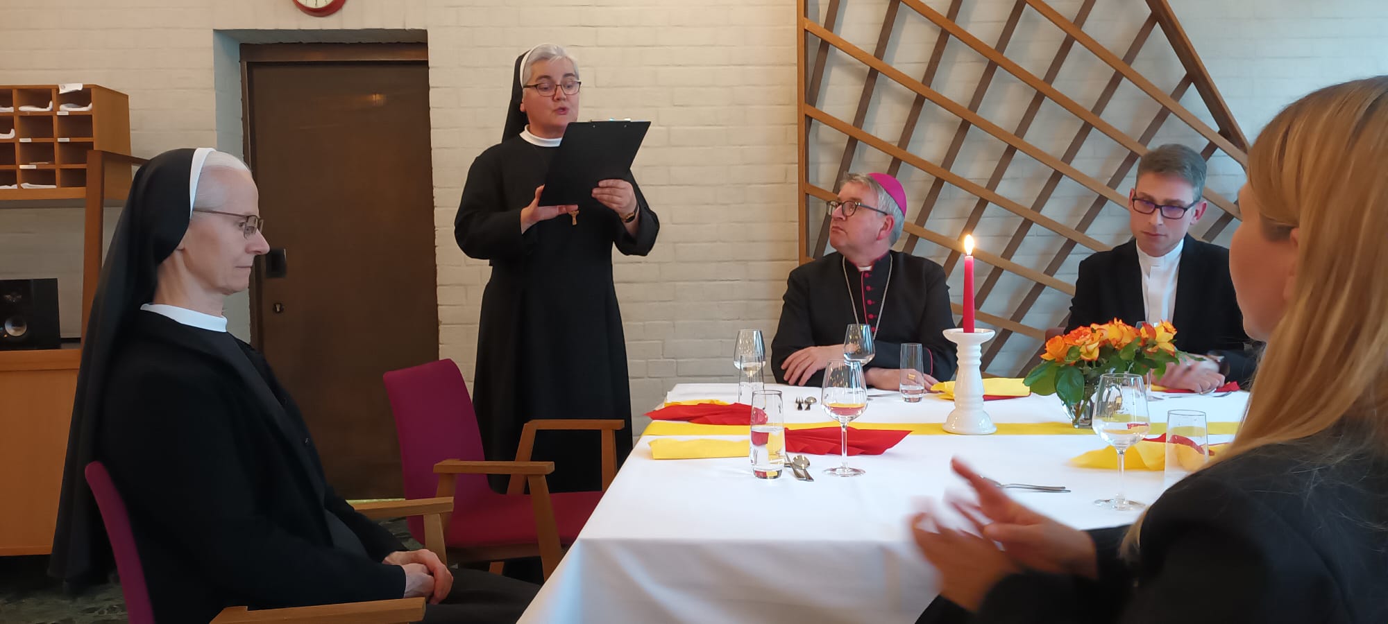 Uime bogoslova i ostalih studenata sestrama je čestitao obljetnicu i podijelio osobno svjedočanstvo susreta sa sestrama bogoslov Thomas Prüß: „Kad sam prije četiri godine došao u sjemenište, imao sam predrasude, očekivao sam strogi, hladni ambijent. No, čim sam ušao u blagovaonicu, vi, drage sestre, dočekale ste me s osmijehom i toplinom. Učinile ste da se ovdje osjećam kao kod kuće. Vaša srdačnost stvorila je ozračje dobrodošlice i sigurnosti za sve nas. Od srca vam hvala za sve što činite. Nosimo vas u srcu i molimo za vas, kao što i vi molite za nas.“