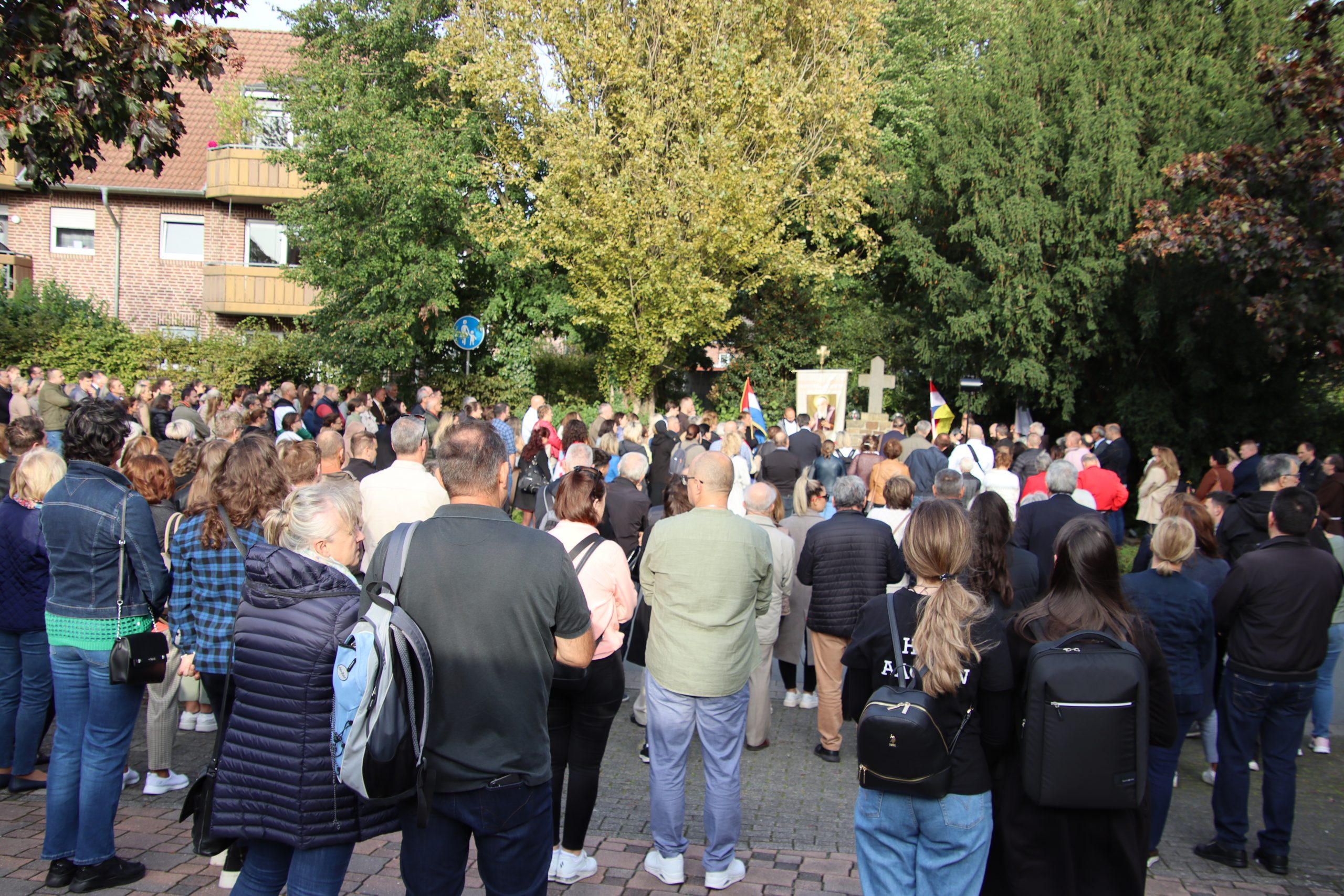 U poslijepodnevnim satima, svi hrvatski hodočasnici su se sa svećenicima uputili od svetišta prema Ulici Hrvata (Kroatenstrasse) gdje se nalazi spomenik Hrvatski križ. Tu, pred Hrvatskim križem svećenici i vjernici su molili za sve poginule Hrvate, ali i za svoje pokojne, čime je 42. hodočašće Hrvata Majci Božjoj Tješiteljici žalosnih u Kevelar službeno završeno.