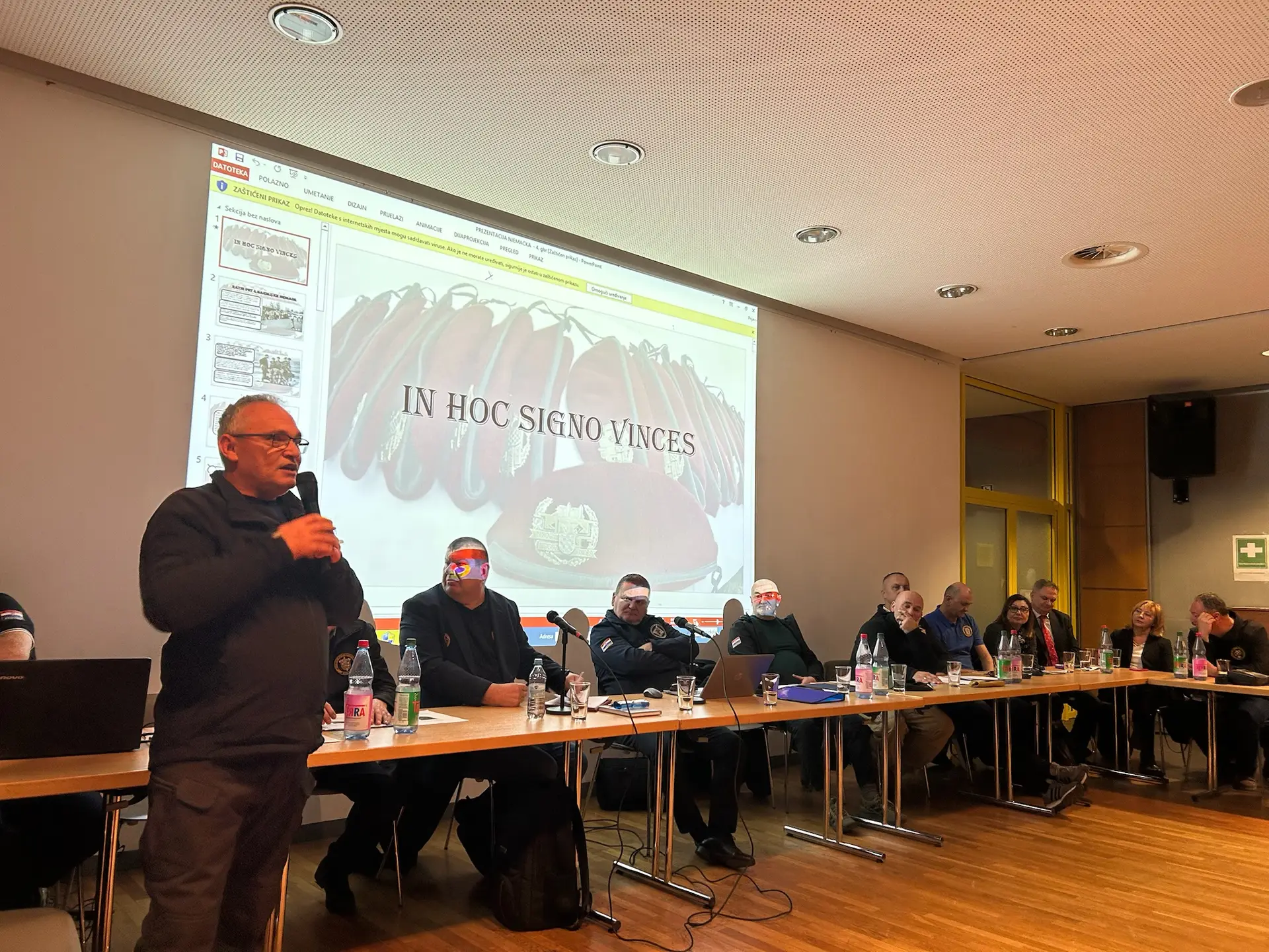 Potom je organizator skupa genarlni konzul RH u Frankfurtu Vedran Konjevod uputio riječi zahvale herojima Domovinskog rata što su se odazvali pozivu da bi svojim svjedočanstvima oživjeli herojske bitke Hrvatske vojske (HV).